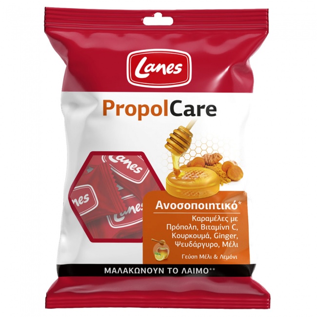 Οι καραμέλες PropolCare της Lanes με γεύση μέλι και λεμόνι περιέχουν συστατικά που συμβάλλουν στη φυσιολογική λειτουργία του ανοσοποιητικού συστήματος, αλλά και στην αντιμετώπιση του πονόλαιμου και του βήχα και στη διευκόλυνση της αναπνoής.