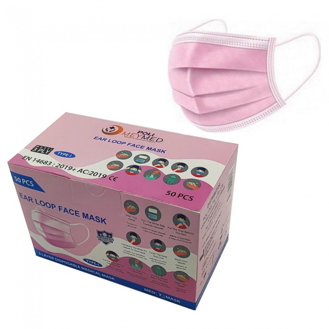 Poli Mey Med Χειρουργικές Μάσκες 3ply 50τμχ (EN 14683:2019 Type I) χρώμα Ροζ