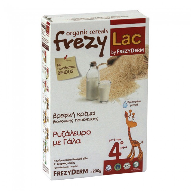 Κρέμα ρυζάλευρου Frezyderm Frezylac Bio Cereal από ρύζι βιολογικής καλλιέργειας, με βιολογικό γάλα και Bifidus για βρέφη μετά τον 4ο μήνα.