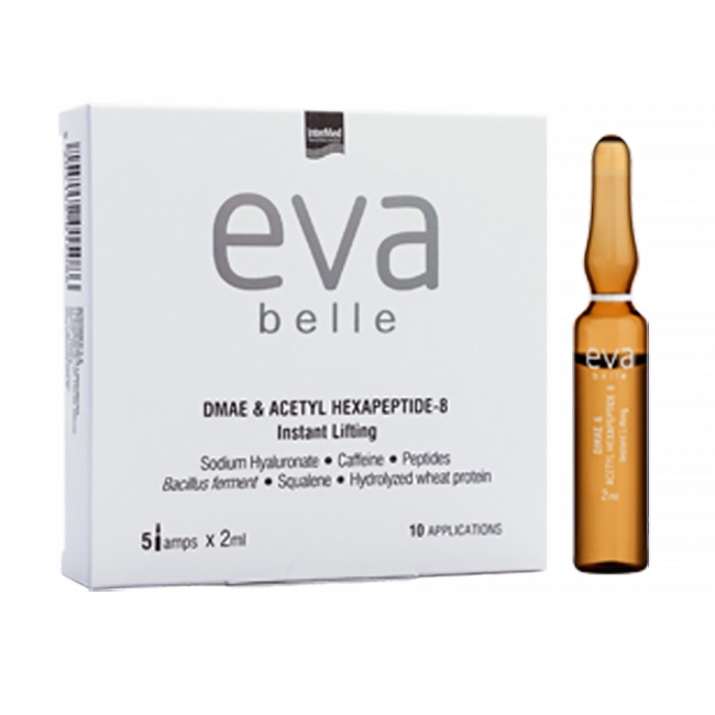 Οι αμπούλες Eva Belle DMAE & Acetyl Hexapeptide-8 Instant Lifting της Intermed χαρίζουν άμεση σύσφιξη και προσφέρουν αντιγηραντική δράση.