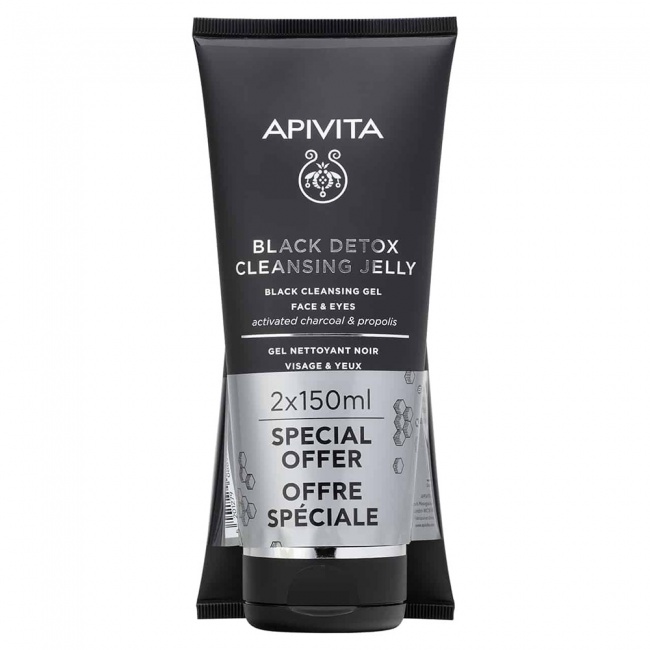 Apivita Promo Pack Black Detox Cleansing Jelly με Ενεργό Άνθρακα & Προπόλη 2x150ml