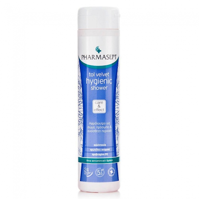 Υγρό καθαρισμού και Υγιεινής του σώματος Pharmasept για καθημερινή χρήση όλης της οικογένειας σε πρόσωπο & σώμα. Ιδανικό για την ευαίσθητη περιοχή (με Bisabololo & Ph 5.5). Δερματολογικά ελεγμένο χωρίς αλκάλια και σαπούνι (Allergens, Parabens, Soap & SLES-SLS free). Με ήπιες αντισηπτικές ιδιότητες, κατάλληλο για ξηροδερμία και δερματικές παθήσεις, ερεθισμούς κακοσμίες, αλλεργίες και αιμορροΐδες. Πλούσιο σε ενυδατικά και μαλακτικά συστατικά, διακριτικό άρωμα.